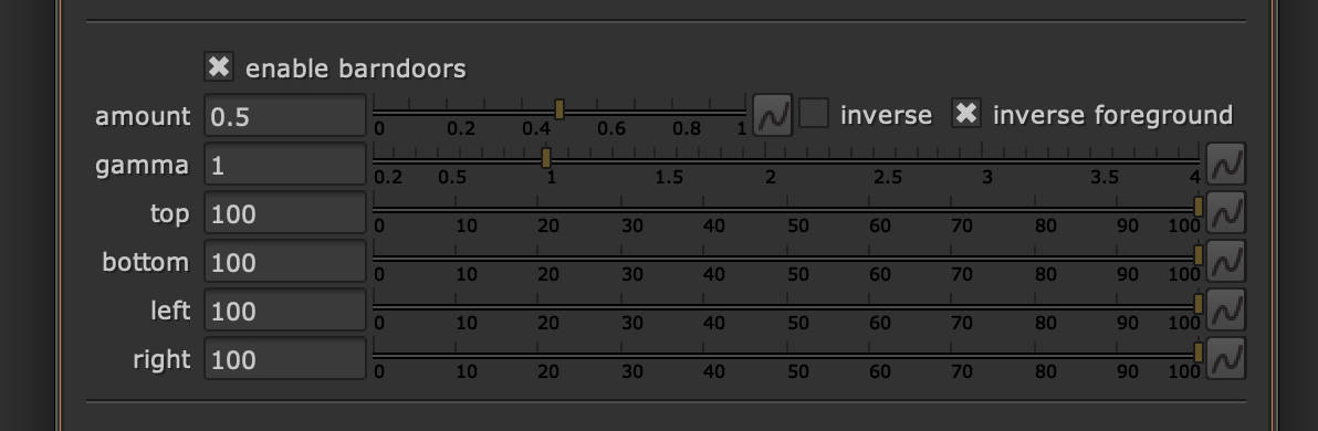 As you can see in the barndoors image, there could be four doors to control. This is top, bottom, left and right. With MagicDefocus2 you can control these individually in the controls of the barndoors.