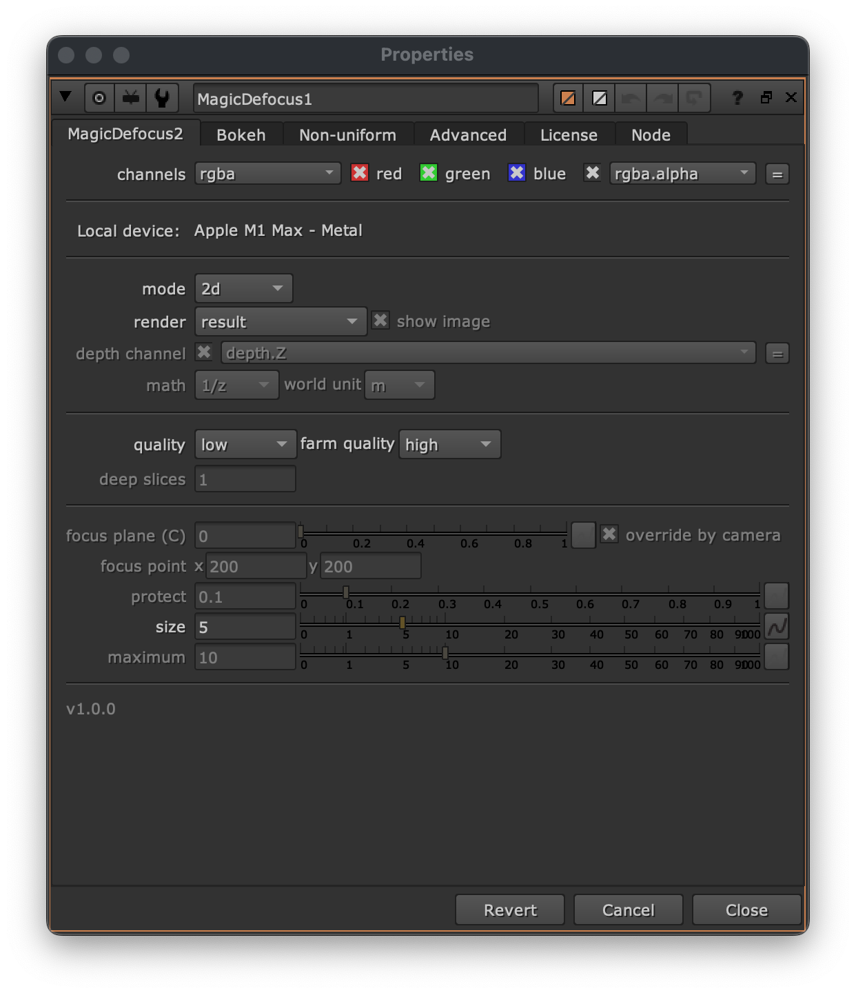 Compared to the original MagicDefocus1, there is no enable non-uniform knob anymore.
